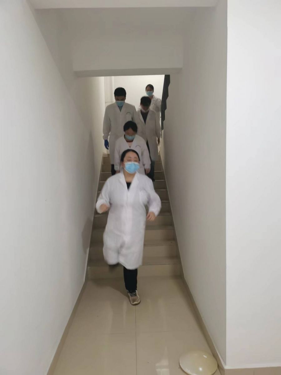我單位公司員工聽到消防警報聲響后,立即有序向安全通道撤離,跑至安全空曠區(qū)域
